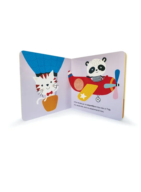 Μια νέα σειρά με υφές και ήχους για πολύ μικρές ηλικίες. Το παιδί αγγίζει τις διαφορετικές υφές που βρίσκει γυρνώντας τις σελίδες και πατάει το κουμπί για να ακούσει τους ήχους των οχημάτων.