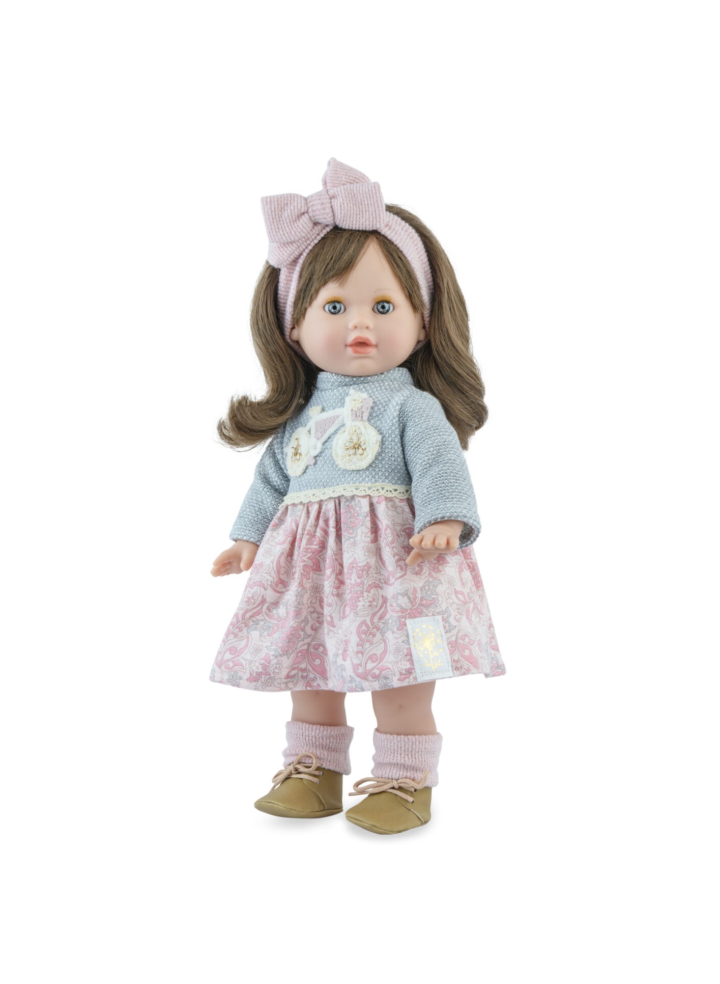 Όμορφη, αυθεντική ισπανική κούκλα Marina & Pau. Έχει μαλακό σώμα με κεφάλι, χέρια και πόδια από βινύλιο. Φοράει ρούχα από ποιοτικά υφάσματα και είναι ελαφρώς αρωματισμένη με άρωμα βανίλιας.