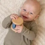 Αυτή ή χαριτωμένη ξύλινη κουδουνίστρα κυλάει και κυλάει, κάνοντας έναν ήχο καθώς πηγαίνει.