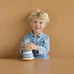 Τα παιδιά ενθαρρύνονται να τοποθετούν τους ξύλινους κρίκους στη σωστή σειρά και να τους στοιβάζουν στον πύργο. Αυτό είναι όμως μια μεγάλη πρόκληση, γιατί ο πύργος συνεχίζει να κουνάει μπρος-πίσω. Συνεχίστε να προσπαθείτε, μπορείτε να το κάνετε!