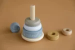 Ξύλινη πυραμίδα ταξινόμησης και ταλάντωσης για παιδιά, που έχει σχεδιαστεί για να αναπτύξει τον συντονισμό χεριών-ματιών μέσω διασκεδαστικού και πρακτικού παιχνιδιού.