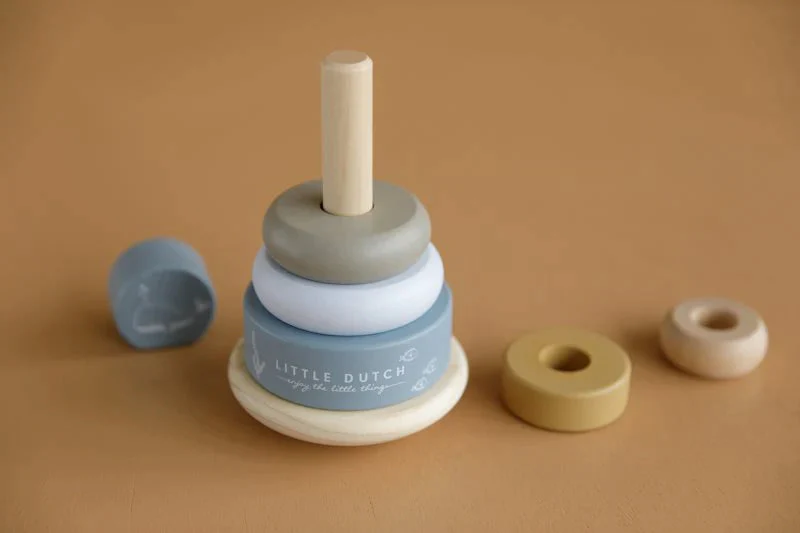 Τα παιδιά ενθαρρύνονται να τοποθετούν τους ξύλινους κρίκους στη σωστή σειρά και να τους στοιβάζουν στον πύργο. Αυτό είναι όμως μια μεγάλη πρόκληση, γιατί ο πύργος συνεχίζει να κουνάει μπρος-πίσω. Συνεχίστε να προσπαθείτε, μπορείτε να το κάνετε!