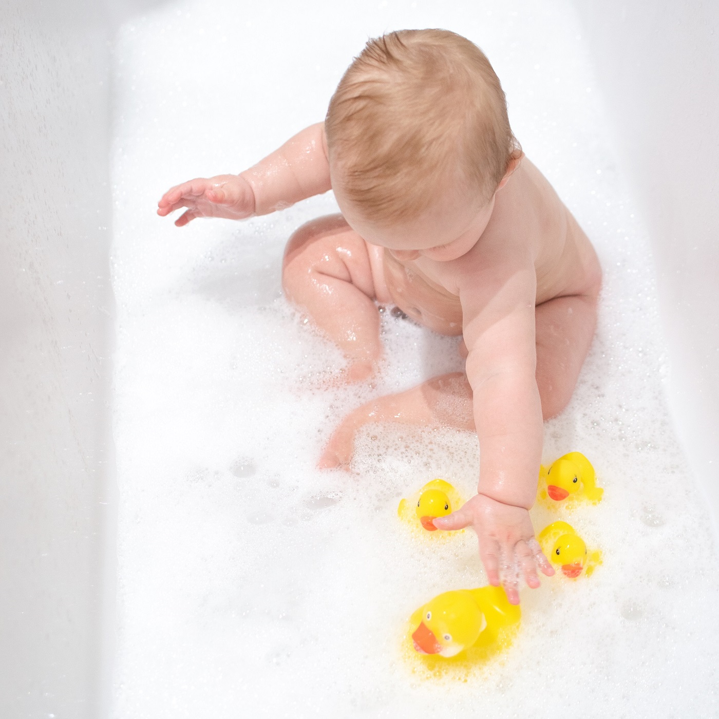 Το σετ αποτελείται από 4 καουτσούκ παιχνίδια: την μαμά πάπια και 3 μικρά παπάκια.