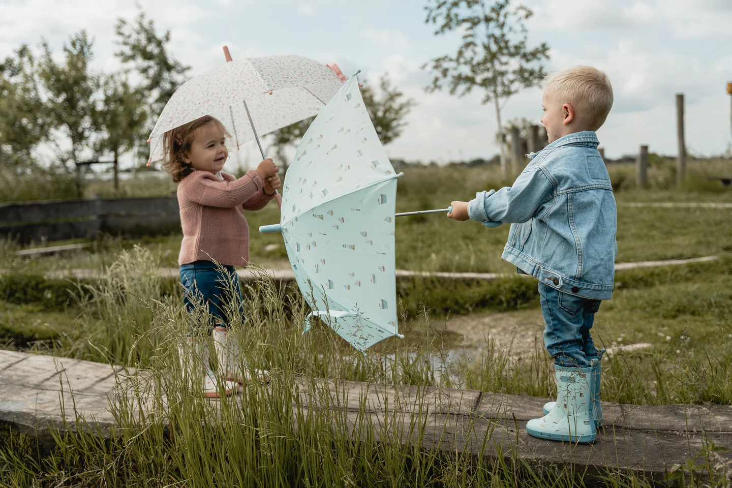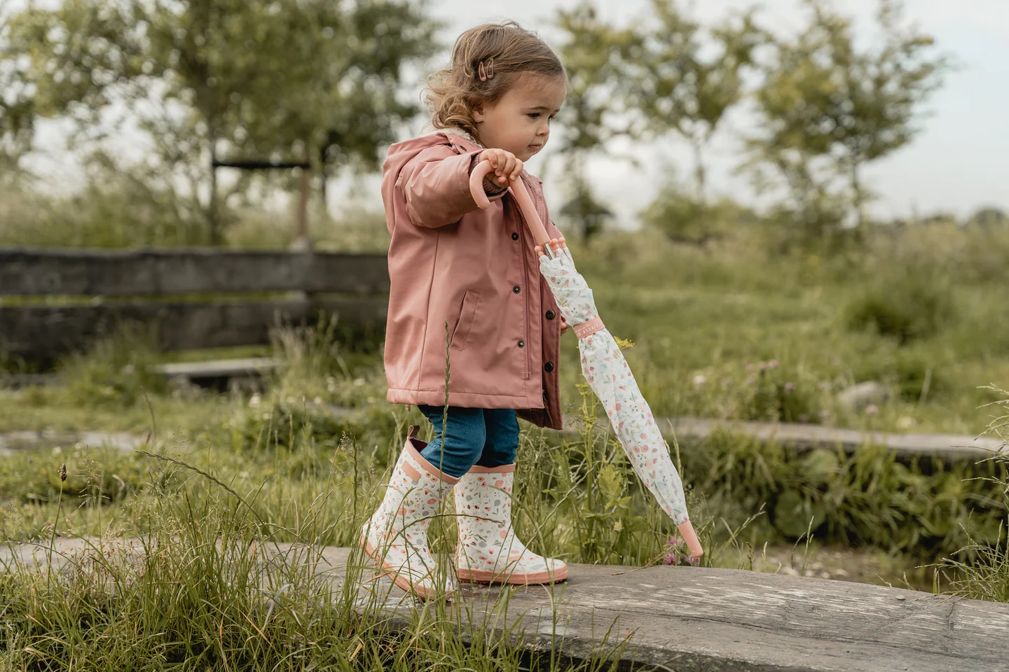 Ας βρέξει! Μείνετε ασφαλείς και στεγνοί κάτω από την ομπρέλα Flowers and Butterflies! Οι πεταλούδες θα δείξουν το δρόμο σε μια νέα περιπέτεια, μακριά από τις πλημμυρισμένες λακκούβες. Με αυτή τη χαριτωμένη ομπρέλα το μικρό σας ανυπομονεί να βγει έξω μια βροχερή μέρα. Η ομπρέλα είναι αδιάβροχη και ελαφριά, κλείνει με velcro, έχει ύψος 57 cm, διάμετρο 66 cm και λαβή σε σχήμα J.