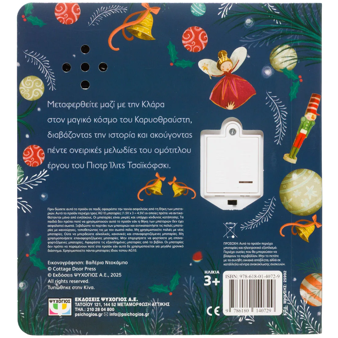 Μεταφερθείτε μαζί με την Κλάρα στον μαγικό κόσμο του Καρυοθραύστη, διαβάζοντας την ιστορία και ακούγοντας πέντε ονειρικές μελωδίες από το ομότιτλο έργο του Πιοτρ Ίλιτς Τσαϊκόφσκι.