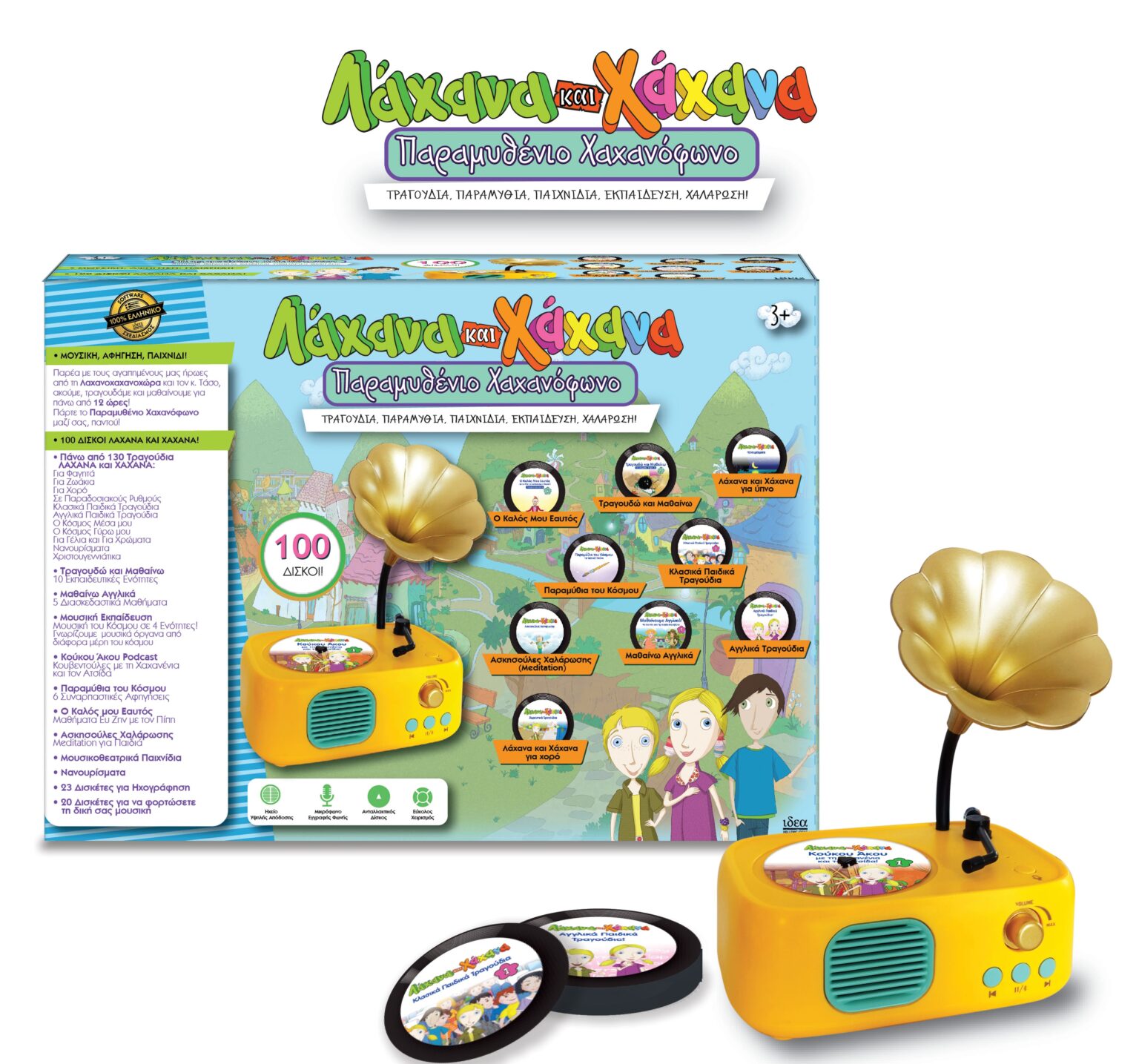 Ο Ατσίδας, η Χαχανένια και ο Πίπης μαζί με τον Κύριο Τάσο, σε ταξιδεύουν στα μονοπάτια της διασκέδασης και της γνώσης με τραγούδια, παραμύθια, αφηγήσεις, κουβεντούλες και αστειάκια, νανουρίσματα, ασκησούλες χαλάρωσης, μαθήματα αγγλικών και άλλα πολλά! Το Χαχαχανόφωνο περιλαμβάνει και 23 κενές δισκέτες για να ηχογραφήσεις τραγούδια και ιστορίες με τη δική σου φωνή, καθώς και 20 δισκέτες για να «φορτώσεις» τη μουσική της επιλογής σου!