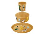Το παιδικό σετ τραπεζαρίας ZOO από το Koziol περιλαμβάνει ένα φλιτζάνι, ένα μπολ και ένα πιάτο σε κίτρινα χρώματα και με εικόνες ζώων που μπορεί να συναντήσουμε όταν επισκεπτόμαστε τον ζωολογικό κήπο. Εδώ θα βρείτε μια καμηλοπάρδαλη, ένα λιοντάρι, μια τίγρη και άλλα ζώα που θα κρατήσουν συντροφιά στο μωρό σας κατά τη διάρκεια των πρώτων προσπαθειών του για φαγητό.