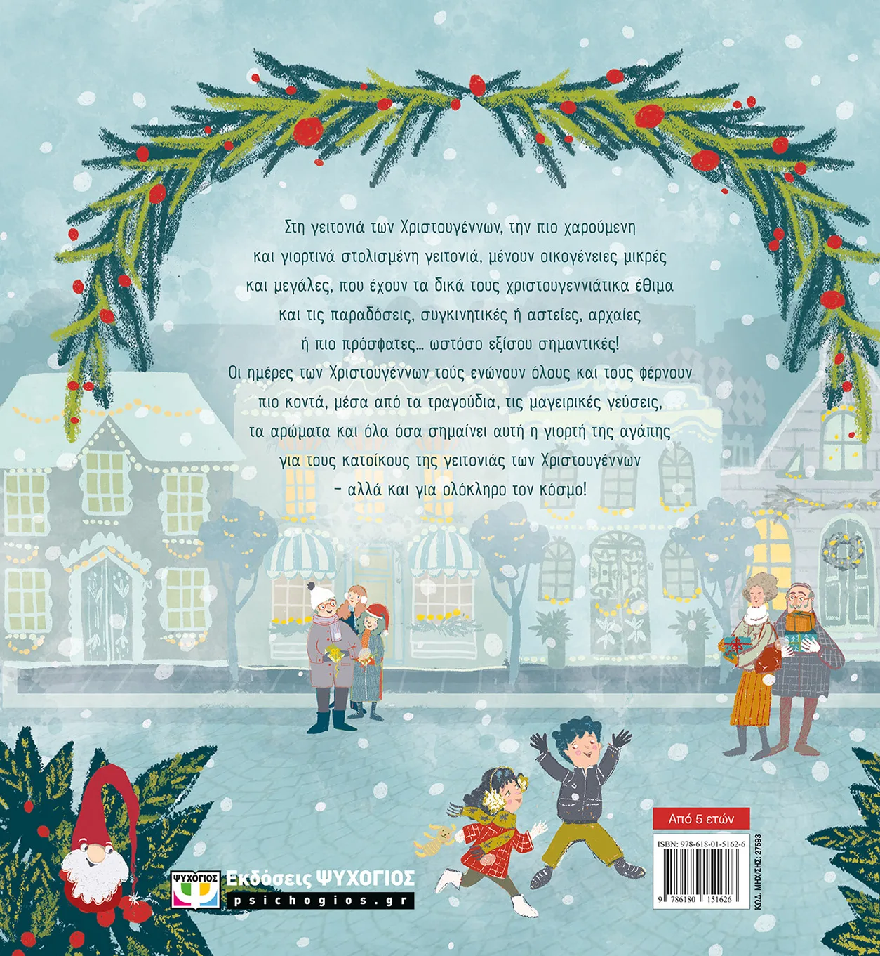 Στη γειτονιά των Χριστουγέννων, την πιο χαρούμενη και γιορτινά στολισμένη γειτονιά, μένουν οικογένειες μικρές και μεγάλες, που έχουν τα δικά τους χριστουγεννιάτικα έθιμα και τις παραδόσεις, συγκινητικές ή αστείες, αρχαίες ή πιο πρόσφατες… ωστόσο εξίσου σημαντικές! Οι ημέρες των Χριστουγέννων τούς ενώνουν όλους και τους φέρνουν πιο κοντά μέσα από τα τραγούδια, τις μαγειρικές γεύσεις, τα αρώματα και όλα όσα σημαίνει αυτή η γιορτή της αγάπης για τους κατοίκους της γειτονιάς των Χριστουγέννων – αλλά και για ολόκληρο τον κόσμο!