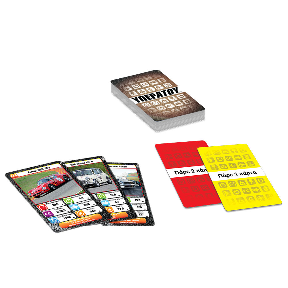 Διάλεξε χαρακτηριστικό, σύγκρινε το με του αντιπάλου, και κέρδισε την κάρτα! Χρησιμοποίησε έξυπνα την κάρτα ΥΠΕΡΑΤΟΥ ™ και βγες μπροστά! Παίξε και μάθε τα πάντα για τα πιο απίστευτα οχήματα και ζώα του πλανήτη!
