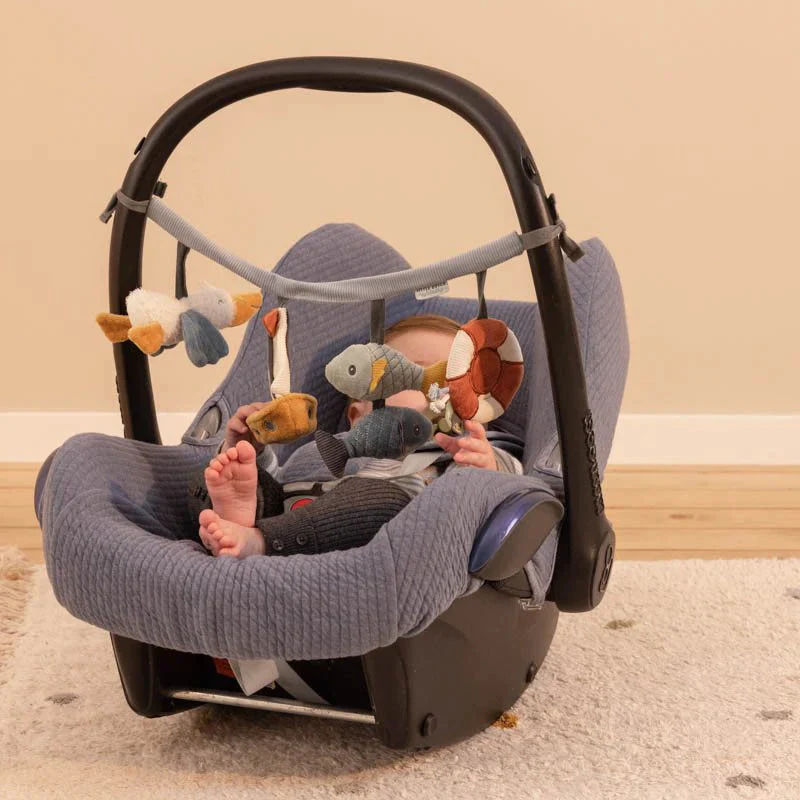 Το να είσαι ξύπνιος δεν ήταν ποτέ τόσο διασκεδαστικό! Η γιρλάντα δραστηριοτήτων καροτσιών είναι ένας πολύ καλός τρόπος για να διασκεδάσετε το μικρό σας. Διαθέτει τέσσερα διαφορετικά κρεμαστά παιχνίδια για να κοιτάξετε, να τα πιάσετε και να παίξετε, συμπεριλαμβανομένου ενός πελεκάνου, ενός ιστιοφόρου, ενός ψαράδικου και ενός καθρέφτη σε σχήμα σωσίβιο.