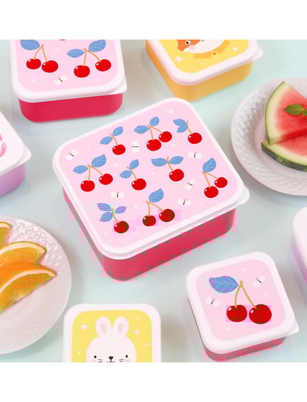 A little lovely company: Σετ 4 δοχεία φαγητού Lunch & Snack Box -Cherries