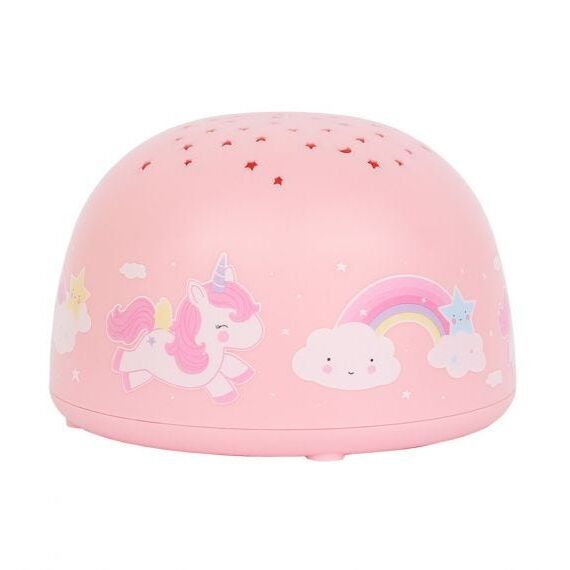 Αυτή η μοναδική λάμπα με σχέδια από χαριτωμένους μονόκερους προβάλλει τα αστέρια στο ανώτατο όριο του υπνοδωματίου ή του υπνοδωματίου παιδιού σας.