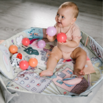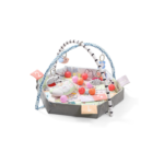 – Διαθέτει κρεμαστά παιχνίδια, εκπαιδευτικό βιβλίο διπλής όψης, μπάλες πολύχρωμες, που μπορούν να τραβήξουν την προσοχή του μωρού για περισσότερη ώρα και να το διασκεδάσουν, ενισχύοντας ταυτόχρονα και τις κινητικές του δεξιότητες.