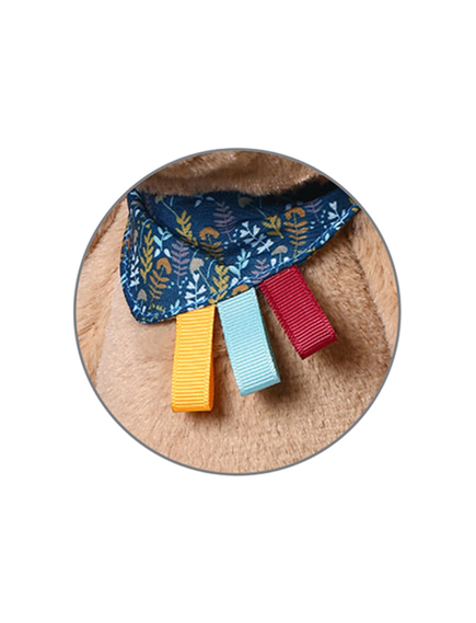 Οι ετικέτες γύρω από το σώμα του παιχνιδιού τραβούν την προσοχή και ενθαρρύνουν την απτική εξερεύνηση. Βοηθούν στην ανάπτυξη της φαντασίας και της λεπτής κινητικότητας του μωρού.