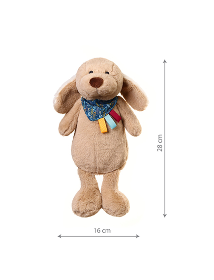 Το σκυλάκι είναι φτιαγμένο από εξαιρετικά μαλακά υλικά, φιλικά προς την ευαίσθητη επιδερμίδα των βρεφών. Είναι ιδανικό για αγκαλιές, για στιγμές ηρεμίας και ύπνου.