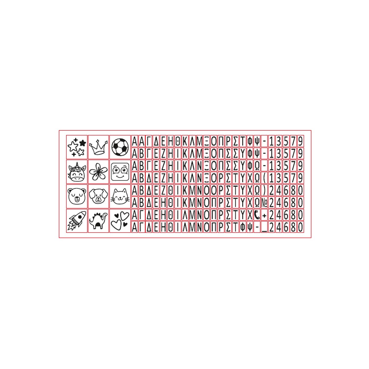 - Τσιμπιδάκι: Για εύκολη τοποθέτηση των γραμμάτων στην σφραγίδα