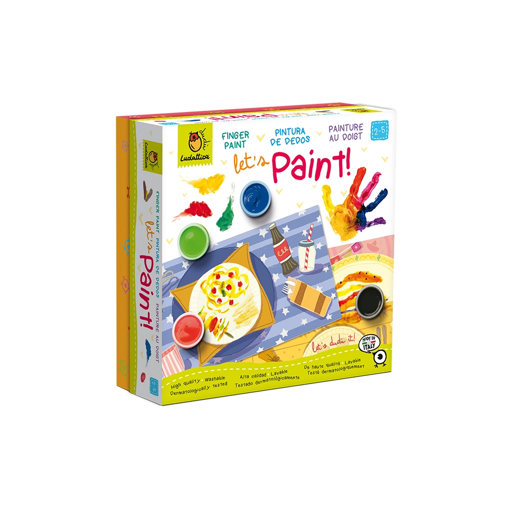Ένα πολύ δημιουργικό παιχνίδι για να πειραματιστούν τα παιδιά με τις δακτυλομπογιές, με έναν διασκεδαστικό και ταυτόχρονα ασφαλή τρόπο! Περιέχει 12 μεγάλες σελίδες και ένα σετ από υψηλής ποιότητας δακτυλομπογιές, ιταλικής προέλευσης, κατάλληλες για παιδιά από 2 ετών. Τα παιδιά μπορούν να χρησιμοποιήσουν τις δακτυλομπογιές απευθείας με τα χέρια τους και να διακοσμήσουν τα πιάτα όπως θέλουν πάνω στα υπέροχα, ήδη εικονογραφημένα τραπέζια της Ludaticca! Περιέχει 12 εικονογραφημένες σελίδες 21 x 42 εκ. και 6 δακτυλομπογιές.