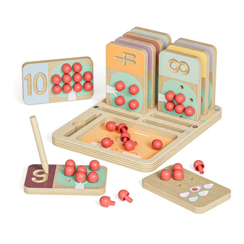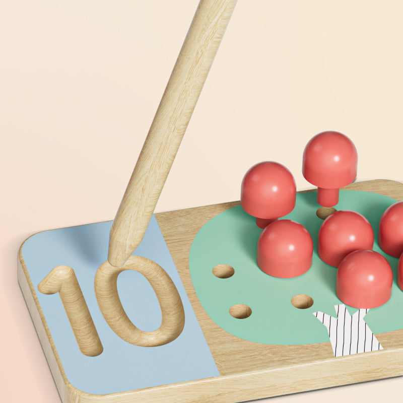 Σε αυτή την πλευρά, τα παιδιά εξασκούνται στην ιχνογράφηση αριθμών με ένα ξύλινο μολυβάκι, αναπτύσσοντας τη λεπτή κινητικότητα και τη μαθηματική αναγνώριση. Συμπληρώνοντας τις τελείες με τα μηλαράκια, η μάθηση γίνεται διασκεδαστική!