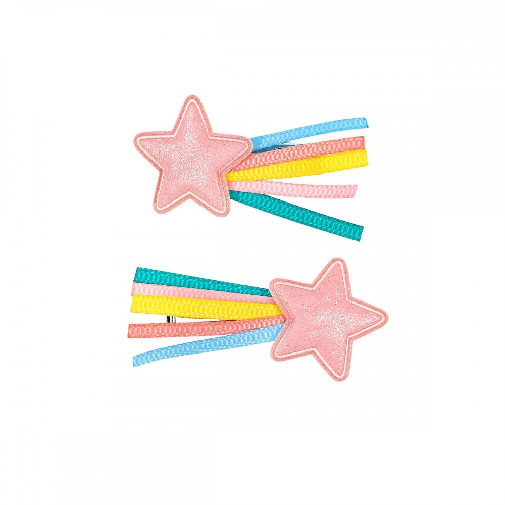 Τσιμπιδάκια για τα μαλλιά διακοσμημένα με αστέρια και πολύχρωμες κορδέλες.