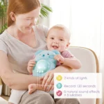 Hape Early Melodies Μουσικό Φωτονανούρισμα Huggy Momo. Πηγαίνετε για ύπνο με αυτό το υπέροχο βελούδινο ποντικάκι με ήχο νανουρίσματος.Mε ένα απάλο αλλά λαμπερό φως,φυσικά ηχητικά εφέ και καταπραϋντικά νανουρίσματα θα βοηθήσουν τα μικρά να κοιμηθούν ήσυχα. Μπορείτε ακόμη και να ηχογραφήσετε 120 δευτερόλεπτα από τη δική σας φωνή! Οι μέλλουσες μητέρες μπορούν να χρησιμοποιήσουν το μουσικό κουτί για να παίξουν χαλαρωτικούς ήχους και μελωδίες στην κοιλιά τους, έτσι ώστε όταν έρθει το μωρό, να αναγνωρίζει και να σχετίζεται με τους ίδιους ήχους και μελωδίες! Επιλέξτε από πέντε φυσικά ηχητικά εφέ και πέντε νανουρίσματα για να αποκοιμηθεί το μωρό σας. Μπορείτε ακόμη και να ηχογραφήσετε 120 δευτερόλεπτα της δικής σας φωνής! Το φως μπορεί είτε να παραμείνει αναμμένο είτε να πάλλεται σταθερά. Κατά τη διάρκεια της ημέρας, μπορείτε να αφαιρέσετε το μουσικό κουτί από την κοιλιά του ποντικιού για να το αγκαλιάζετε σαν ένα κανονικό βελούδινο παιχνίδι! Οι μητέρες μπορούν να χρησιμοποιήσουν το μουσικό κουτί για να παίζουν χαλαρωτικούς ήχους και μελωδίες.