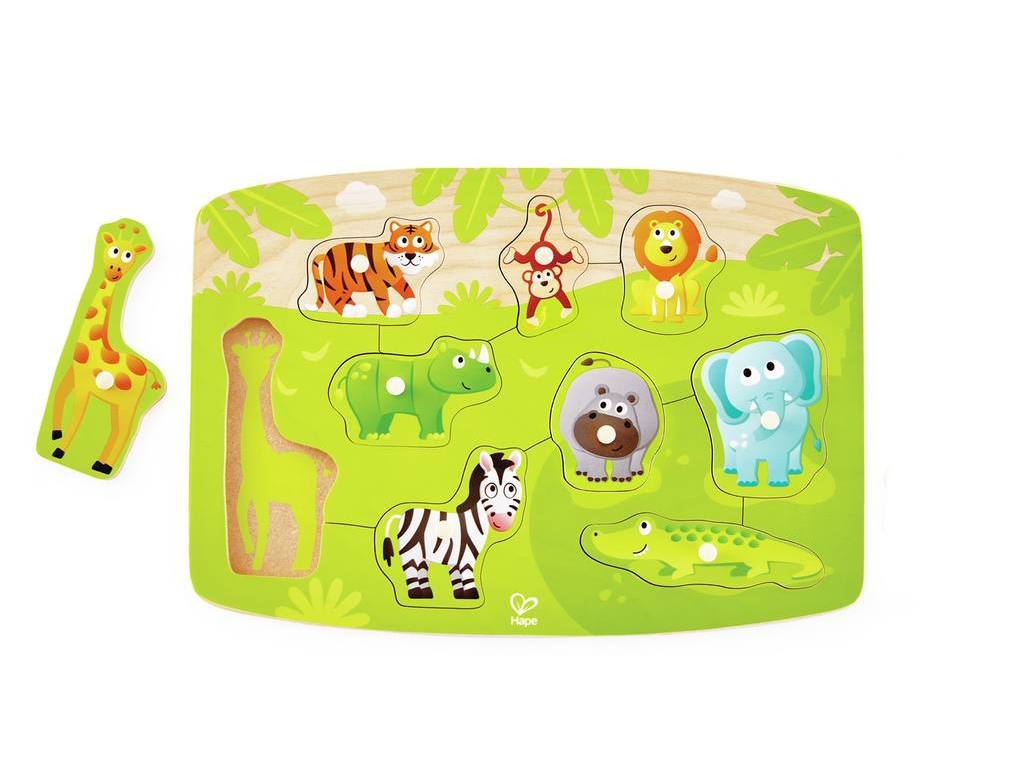 Hape Happy Puzzles Jungle Peg Puzzle – Παζλ Με Τα Ζώα Της Ζούγκλας – 10Τεμ.