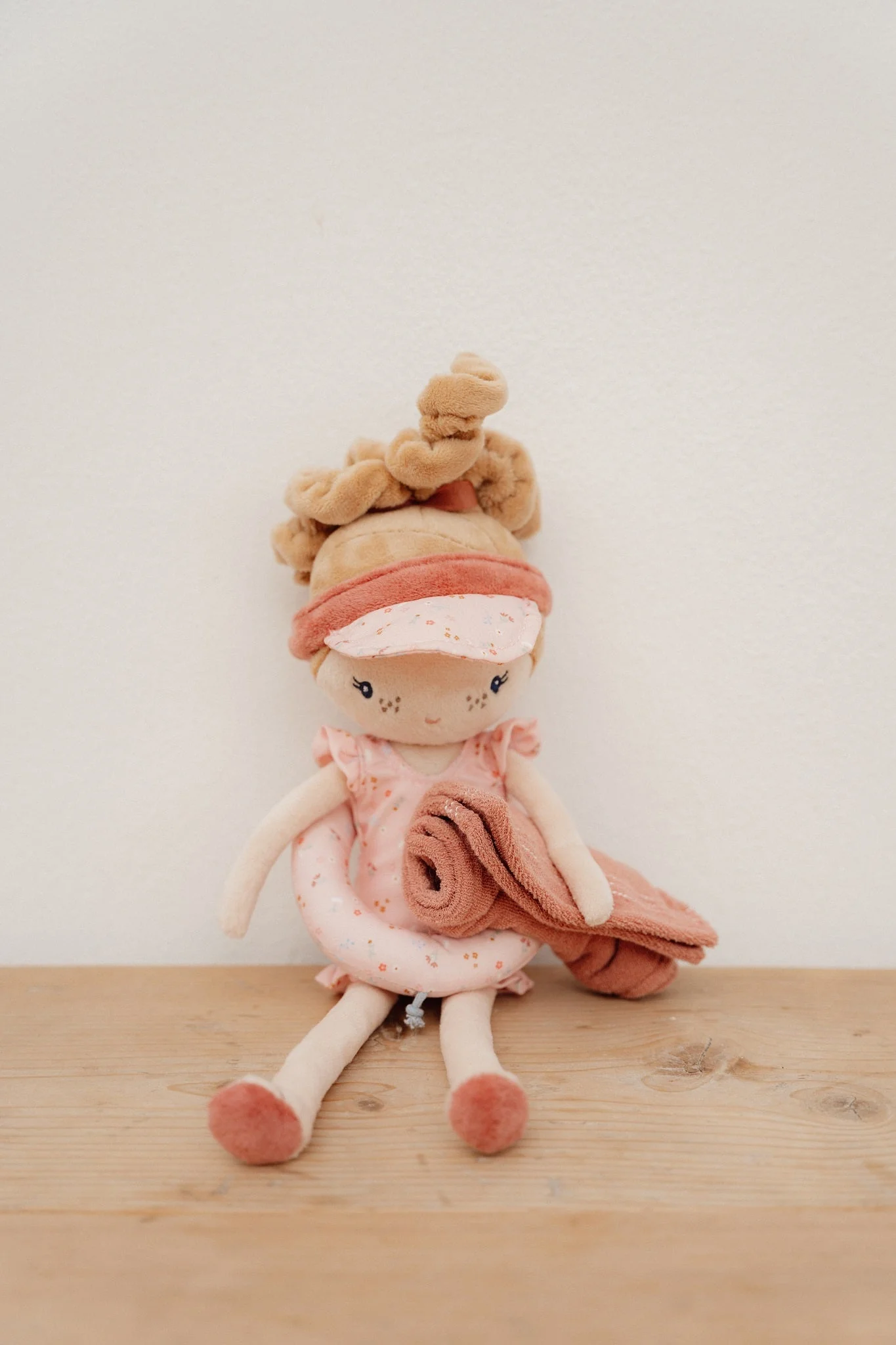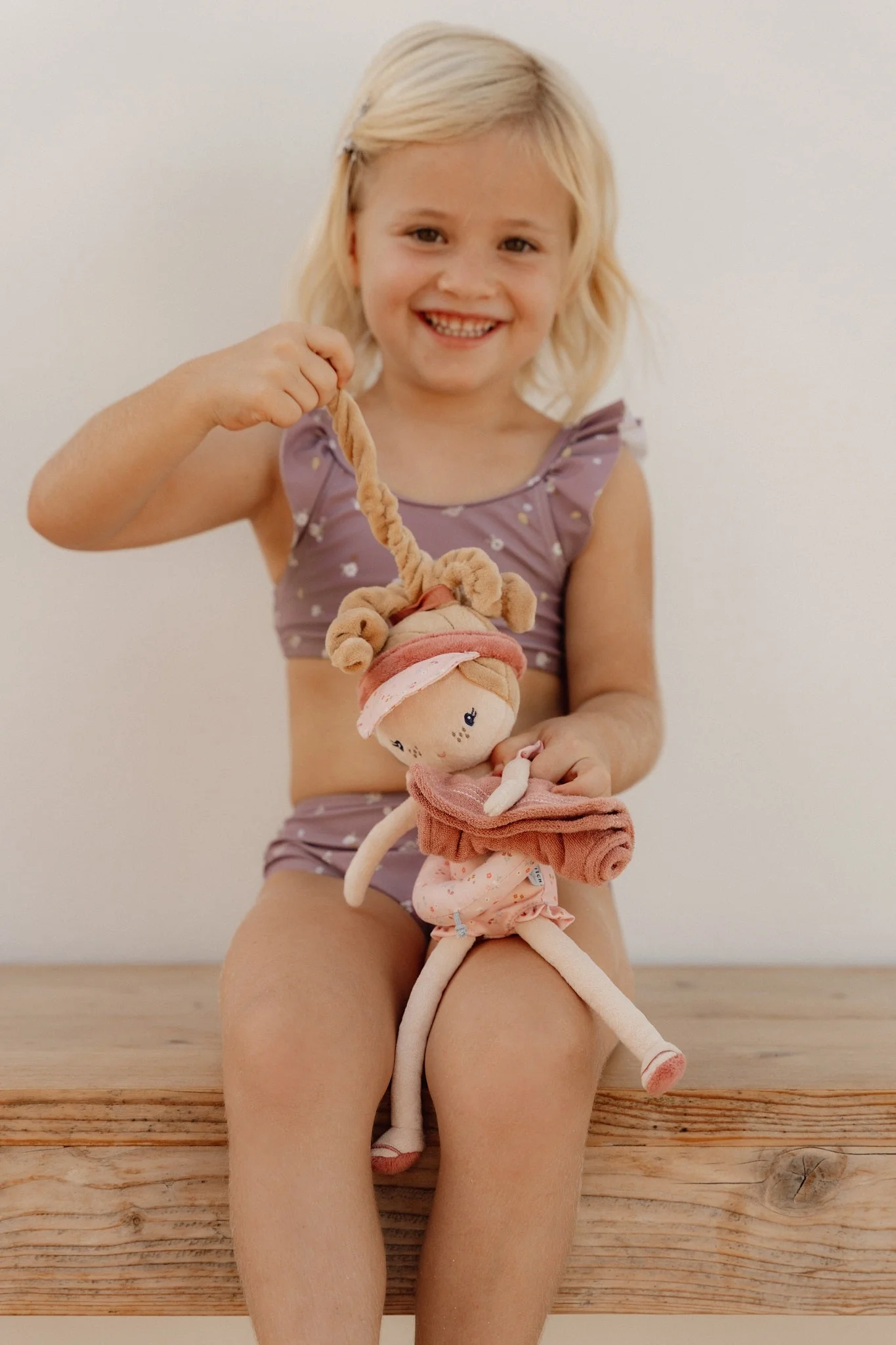 Αυτή η βελούδινη κούκλα με τις σαγιονάρες, που φοράει το πιο χαριτωμένο μαγιό με σχέδιο Little Pink Flowers, ανυπομονεί να την αγκαλιάσεις Το καλοκαιρινό της ντύσιμο ολοκληρώνεται με ασορτί καπέλο και το πιο βασικό ένα σωσίβιο για ατελείωτο παιχνίδι στο νερό. Της αρέσει να χορεύει στον ήλιο, να ψάχνει για κοχύλια στην ακτή και να παίζει στο νερό. Η Mila θα γίνει η νέα σου καλύτερη φίλη!