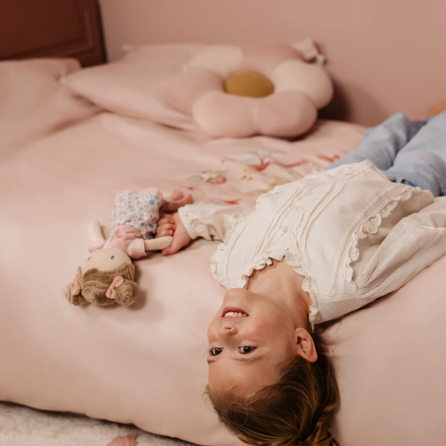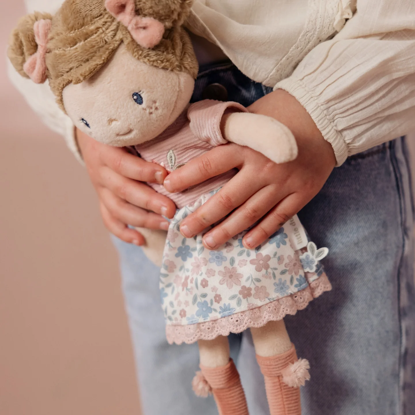Με το μαλακό σώμα της, τα χαριτωμένα κοτσιδάκια, το χαρούμενο λουλουδένιο φορεματάκι της και τα μικρά μποτάκια με πομ-πομ, η Rosa είναι έτοιμη για αγκαλιές, παιχνίδι φαντασίας και ζεστές στιγμές αγάπης.