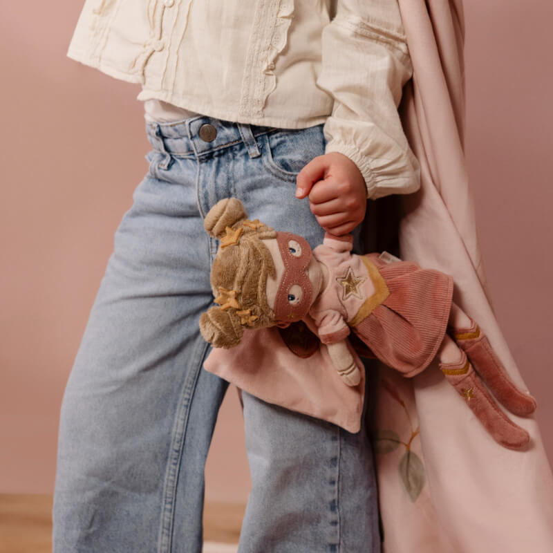 Με το μαλακό σώμα της, την κάπα με χρυσές λεπτομέρειες, τη λαμπερή μάσκα και τα παιχνιδιάρικα μποτάκια, η Rosa είναι έτοιμη να κάνει κάθε μέρα μια περιπέτεια.