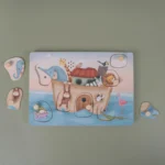 Γνωρίστε όλα τα ζώα στην Κιβωτό του Νώε, αναγνωρίστε τα σχήματά τους και μάθετε τους χαρακτηριστικούς ήχους τους με αυτό το υπέροχο παζλ!