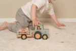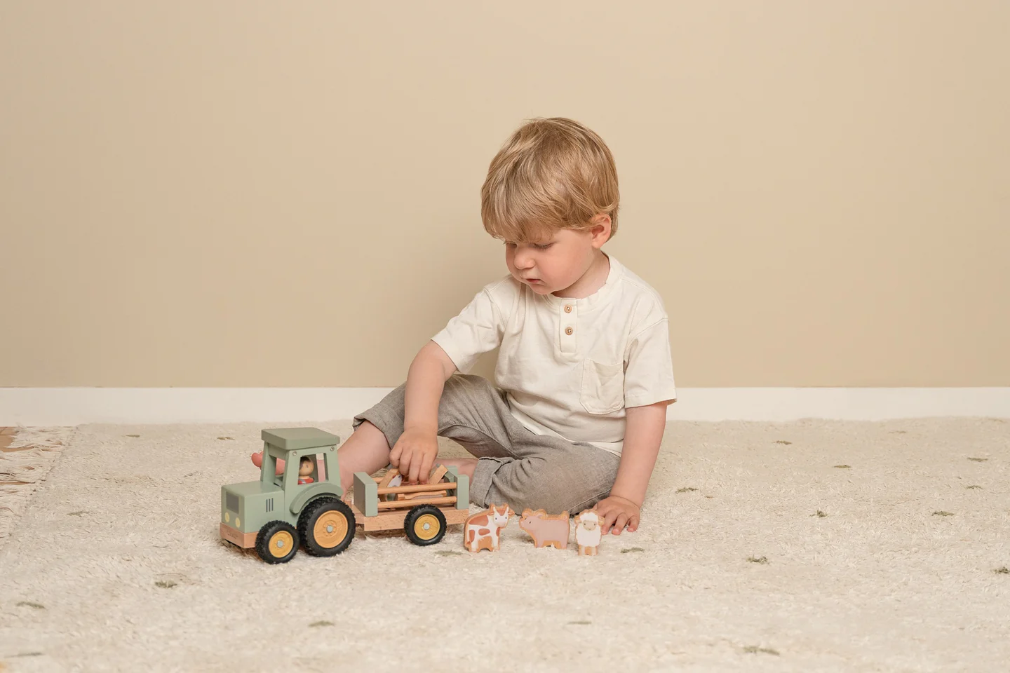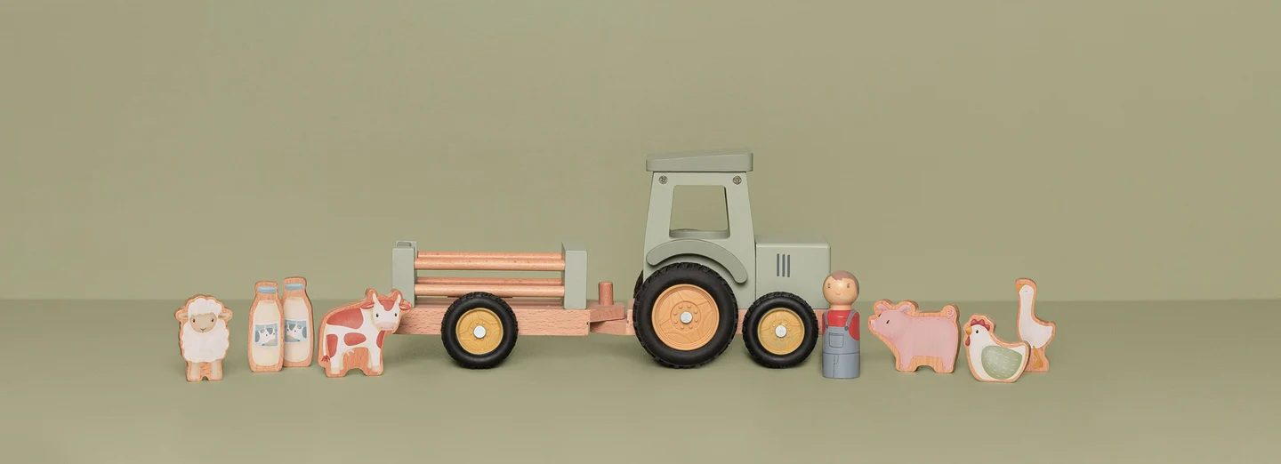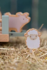 Σούπερ διασκεδαστικό παιχνίδι που θα εξάψει τη φαντασία του μικρού σας. Εκτός από τα ζώα, στο τρέιλερ θα βρείτε και δύο μπουκάλια με γάλα. Φέρτε τα όλα στη φάρμα και η αποστολή σας έχει ολοκληρωθεί! Τα πάντα είναι κατασκευασμένα από ξύλο, ώστε να διαρκέσουν για πολύ καιρό.