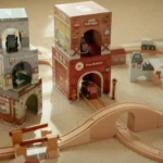 Αυτό το χαρούμενο σετ περιλαμβάνει 6 εικονογραφημένους χάρτινους κύβους και αντίστοιχα οχήματα, προσφέροντας αμέτρητες δυνατότητες παιχνιδιού και φαντασίας. Οι κύβοι μπορούν να στοιβαχτούν ο ένας πάνω στον άλλο ή να τοποθετηθούν πάνω στις ράγες του τρένου, επιτρέποντας στα οχήματα να περνούν από κάτω με ευκολία.