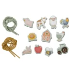 Μια συναρπαστική δραστηριότητα για τα μικρά παιδιά με την εικονογράφηση της συλλογής Little Farm, για την εξάσκηση των κινητικών τους δεξιοτήτων και τον συντονισμό χεριού-ματιού καθώς θα περνάνε το κορδόνι μέσα από τις μικρές τρύπες με ακρίβεια.