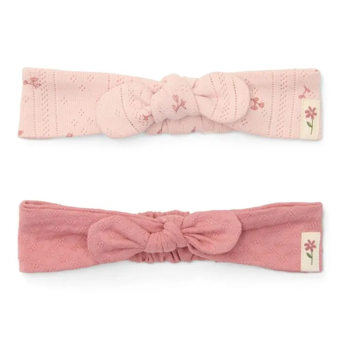 Αυτό το υπέροχο σετ με δύο κορδέλες για τα μαλλιά είναι η τέλεια πινελιά για κάθε ρομαντικό ντύσιμο. Η μία κορδέλα διαθέτει ανάγλυφη υφή pointelle σε απαλό ροζ με μικρά λουλουδάκια ενώ η άλλη είναι σε πιο σκούρο ροζ χρώμα με κομψό ύφασμα – και οι δύο στολισμένες με έναν χαριτωμένο φιόγκο.