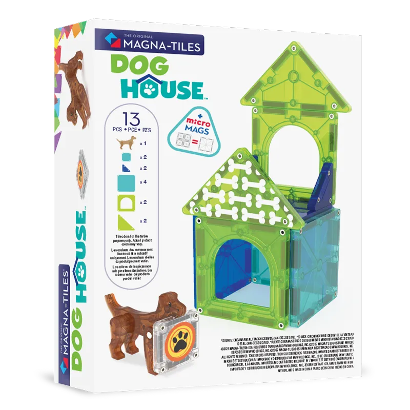 Το Dog House 13-Piece Set της MAGNA-TILES προσκαλεί τα παιδιά να δημιουργήσουν το δικό τους σπιτάκι για έναν αξιαγάπητο σκύλο, ενισχύοντας τη φαντασία, τη φροντίδα ζώων και τη δημιουργική κατασκευή!