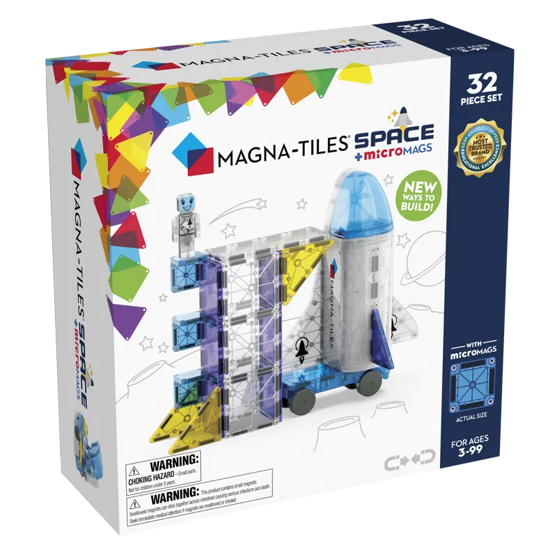 Το MAGNA-TILES Space 32 κομματιών στέλνει τα παιδιά σε μια φανταστική διαστημική αποστολή! Με μοναδικά κομμάτια όπως διαστημικό λεωφορείο, κάψουλα και microMAGS, το σετ ενισχύει τις STEAM δεξιότητες μέσα από παιχνίδι που ξεπερνά τη φαντασία!