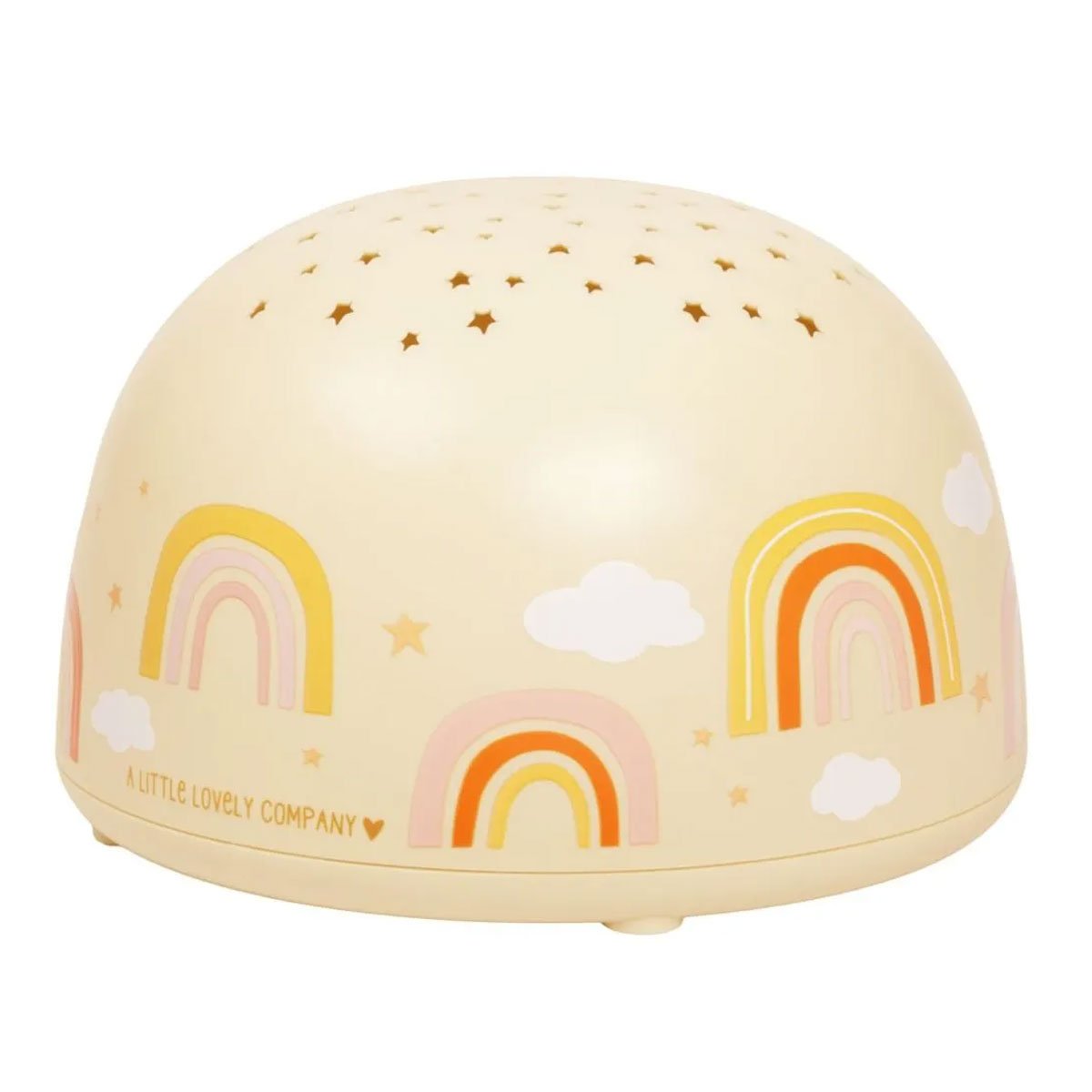 Προτζέκτορας με φως της εταιρείας A Little Lovely Company, που προβάλει αστέρια στο ταβάνι και τους τοίχους του βρεφικού δωματίου. Είναι κατασκευασμένος από πλαστικό ABS με σχέδιο ουράνιων τόξων. Μπορείτε εύκολα να αλλάξετε χρώματα στα αστέρια που προβάλλονται με ένα απλό πάτημα κουμπιού. Οι εναλλαγές είναι μεταξύ πολύχρωμου, μπλε, πορτοκαλί και πράσινου χρώματος. Μπορείτε να το αφήσετε σταθερά αναμμένο ή να επιλέξετε την λειτουργία του εύχρηστου χρονοδιακόπτη που απενεργοποιεί τον προτζέκτορα μετά από 30 λεπτά. Λειτουργεί με 3 μπαταρίες AAA 1,5 V, οι οποίες δεν περιλαμβάνονται.