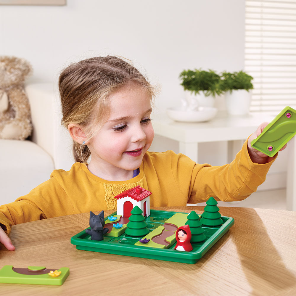 Δημιουργήστε το μονοπάτι έτσι ώστε η κοκκινοσκουφίτσα να οδηγηθεί στο σπίτι της γιαγιάς της χωρίς να κινδυνεύει από τον κακό λύκο! Η εταιρεία SmartGames παρουσιάζει μια σειρά από παιχνίδια λογικής και ενδυνάμωσης IQ. Με τη βοήθεια του παιχνιδιού ¨κοκκινοσκουφίτσα¨, εμπνευσμένο από το γνωστό παραμύθι, αναπτύσσονται η λογική σκέψη, η στρατηγική και η οπτική και χωρική αντίληψη. Διαθέτει 48 διαφορετικές προκλήσεις σε τρία επίπεδα δυσκολίας καθώς και βιβλίο οδηγιών.