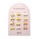 Μια όμορφη καρτέλα με 12 ζευγάρια σκουλαρίκια, ένα ζευγάρι για κάθε μήνα του χρόνου.