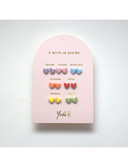 YUKO.B: Καρτέλα με 7 ζευγάρια σκουλαρίκια – A Week of Poetry Hearts